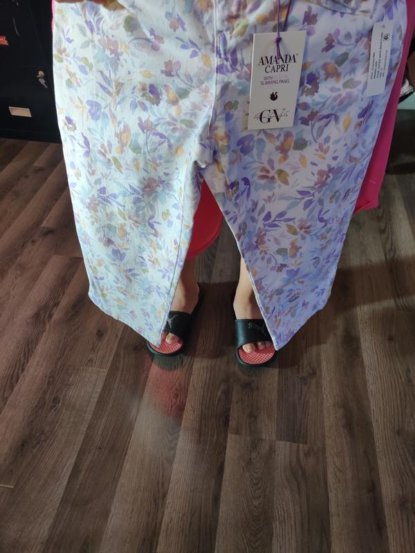 I love these capris. They have a little stretch so they are extremely comfortable. And the print is cute and goes with many tops in my wardrobe.