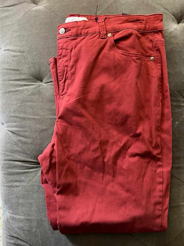 Nice pants, the color is a deep maroon which goes well with a plain black or white shirt. They are super soft which is a nice change up from regular jeans.