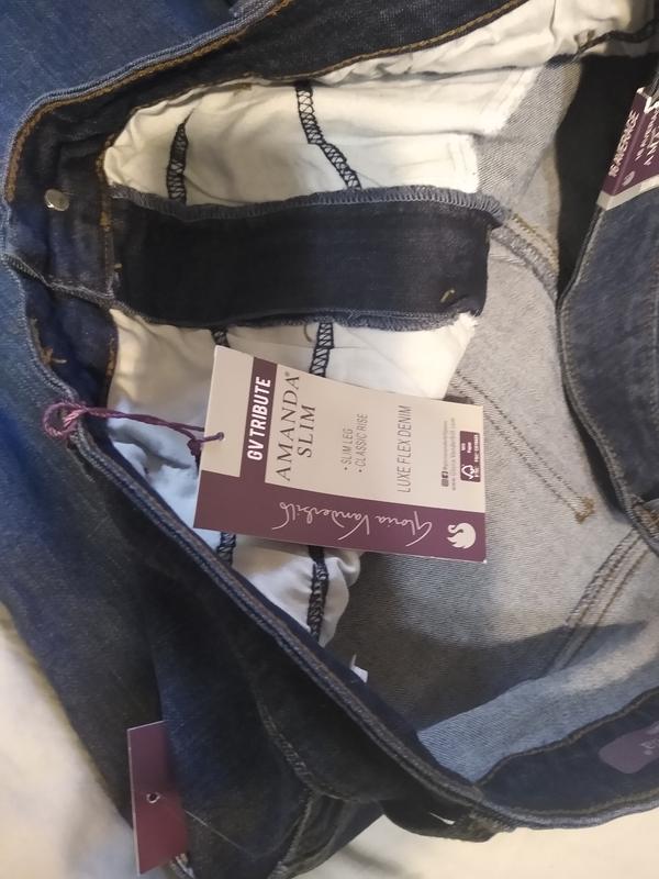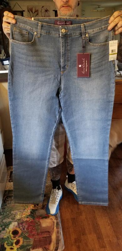 These Gloria Vanderbilt jeans are very comfortable, stylish and figure flattering. The fabric is mid-weight consisting of 68% viscose, 28% nylon & 4% spandex. Going down a size provided the best fit.
