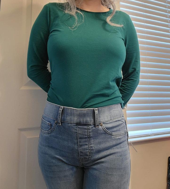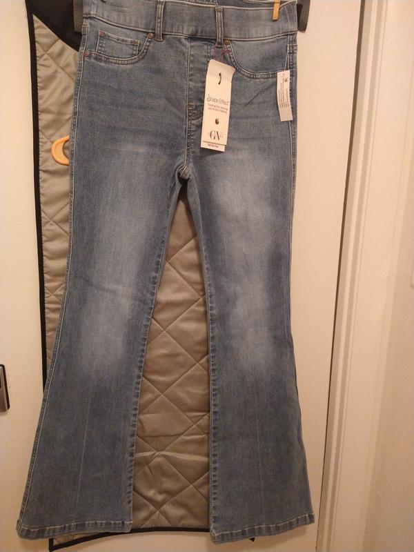 I love these pull on flared jeans, the light color is perfect. They are so comfortable as I have issues with my stomach so they are very comfortable on my tummy. Wish they were a bit longer, as I am 5'7. But still work. the fit is great, I bought a size 10. I am 131lbs.