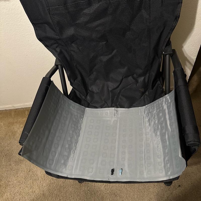 The chair is pretty comfortable, though there are no adjustments for the seat or back. The seat position is a little upright for my preference. The cooling feature works well so your seat and back remain cool. It was a little bit cumbersome to put together with several components. With the water, ice pack, and battery pack included with the chair, it may be a little heavier than some fold up chairs and carrying it long distances may not be comfortable. I question whether the effort to fill the water bag, add the ice pack, keep the battery pack charged, and hook everything up each time I want to use it may be a hindrance to actually using it much. I’m just not sure the cooling function is worth all of the effort for me. The pump also makes a noticeable humming noise. If you’re using it in a quiet environment, that might be a concern. Overall, the chair works and it does cool. If that is important to you and you don’t mind a little preparation and connection work to get it set up, this might be a good chair option for you.