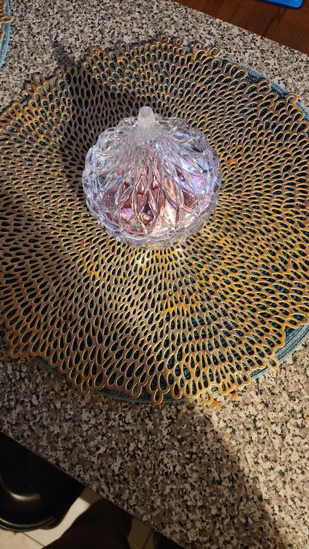 I was looking for a crystal looking dish to place on my coffee table and maybe even hold some delicious chocolates in and this fit the bill. It’s charming, not too big or too small for my needs, and makes a great piece in my home.