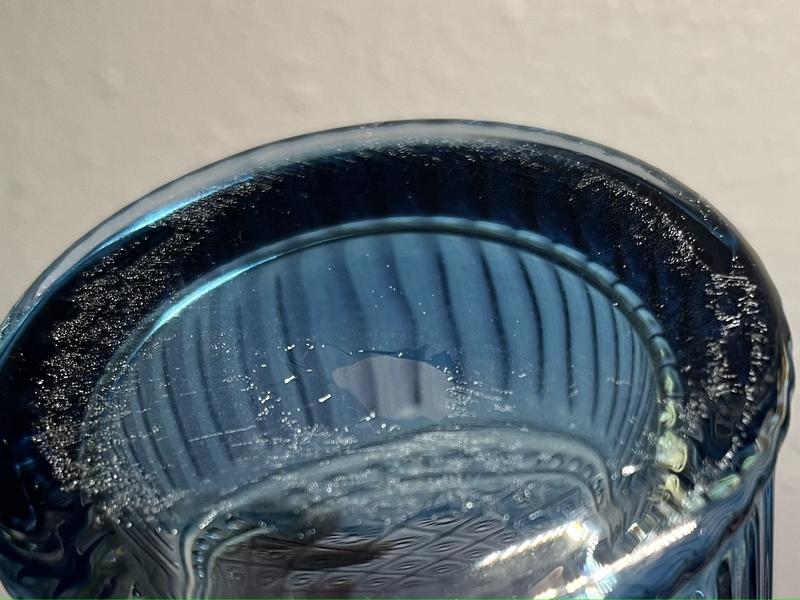While the color is lovely, the glasses are actually coated with the blue color and is flaking off after a couple of months.