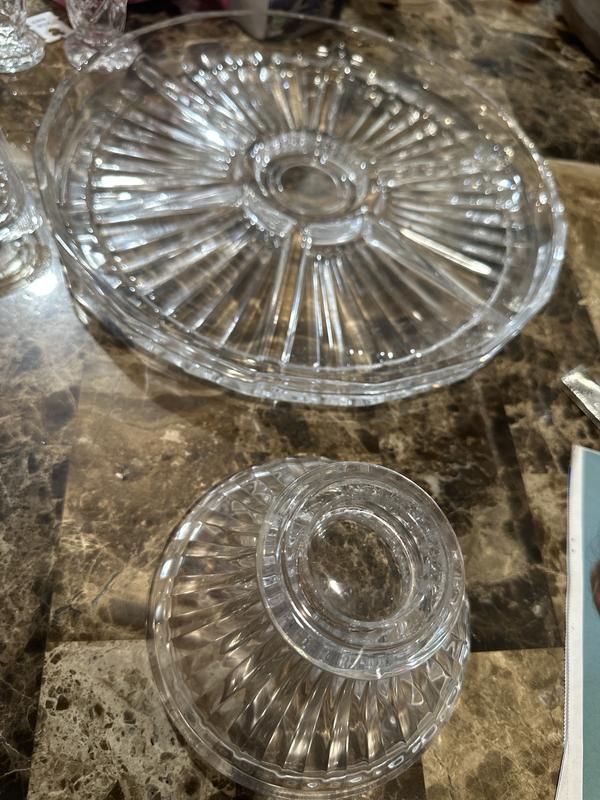 This is a beautiful crystal cake stand. It is sturdy cake stand that has multi uses. It can convert to a punch bowl for drinks , prepare a big salad with all the trimmings, chips and dip or even to hold seasonal fresh fruit in the bowl. But most importantly it is a beautiful way to display a cake.