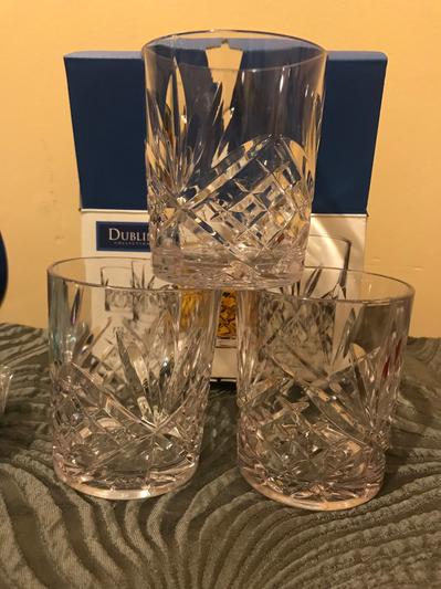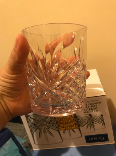 I wanted a clear plastic glass to use in my bathroom. The cut glass look on this one matched a small clock that I have on my counter. The reason I gave it 4 stars instead of 5 is because the glass has a slight purple tint to it. (There is no purple in the room.) Otherwise it's a good quality plastic glass.