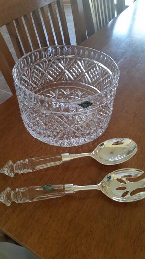 Perfect set! Server tongs are best I'v ever seen. Bowl is stunning and perfect size - not overly large. I have a lot of the Godinger glasses and whisky decanter and shot/sipping glasses. None ever disaapoint! Buy any of their offers.