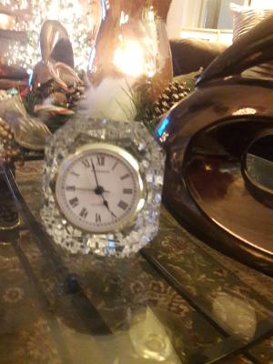A lovely clock for a small space...a desk or bedroom dresser. Bought to replace the small crystal Godinger clock I bought about 20 years ago. It still worked however the minute hand broke off when I was changing the time for spring. Only problem is the ticking of the hands on this clock is slightly louder than the one that was replaced. ...cant put it beside my bed so just put it on the dresser a little bit away from the bed. It is pretty