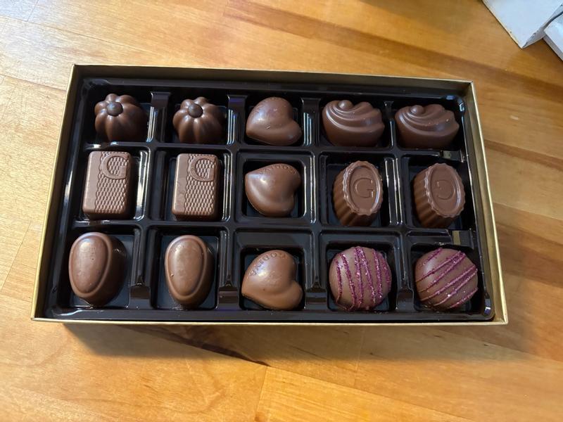Godiva chocolate is high quality and a great accessible gift for any occasion. Flavors are rich and tasty, especially with interesting combos like macadamia-biscuits and cherry-cranberry. The chocolates in the packaging look very luxurious and taste as such too.