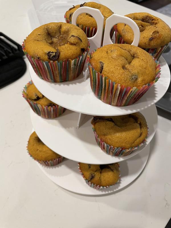 This is a good muffin tin with a few key elements that make it a great muffin tin. Tin is a well made, weighty, non stick, allows for quick cleanup & with the heavier weight allows for more even heat distribution therefore better rising for your baked treats. That in itself is noteworthy. I think it is also a great value for the dollar. It arrived swiftly was packaged well and used same day it arrived. The lid fits sungly & slides on easily so no fighting to fit. However, the cherry on top, is the unexpected attached muffin display stand. I was aware it had one I did not realize how neatly the stand would fit into the cover so it slides in place on top holding with all pcs sungly held together once you're done in the grooved top for easy storing. Always ensuring wherever you take your pan...you take your stand...no searching for pieces. Sooo people, go on bake it...take it...stack it then rack it!! This is form & function, a total win-win!