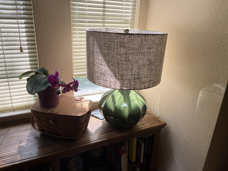 Gordy Modern Accent Table Lamp Handcrafted 20.5" High Ribbed Green Ceramic Oatmeal Fabric Drum Shade Decor for Living Room Bedroom House Bedside Nightstand Home (Color May Vary) - 360 Lighting