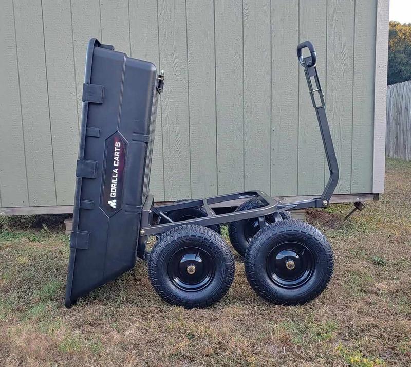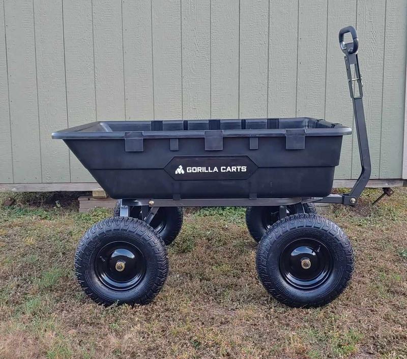 I bought one of these carts for my mom a few years back and was so jealous I had to have one for myself! This thing is tough, easy to use, and turns any yard work or projects into an efficient task. It took me ~25 minutes to put this together by myself and was fairly simple, all things considered. Since acquiring this wagon of glory, we've used it to haul mulch, move firewood, and even connected it as a trailer for our golf cart (10/10 experience). It turns on a dime and the dumping feature is so handy when you're working with dirt or something you'll need to spread. I highly recommend this cart!