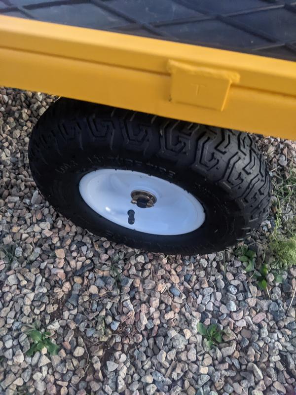 The large pneumatic tires make it easy to maneuver over all kinds of ground and debris. The steel frame makes for a solid cart, and the steering of it makes for easy maneuverability, even in tight spaces. I keep finding more and more uses for it around my home.