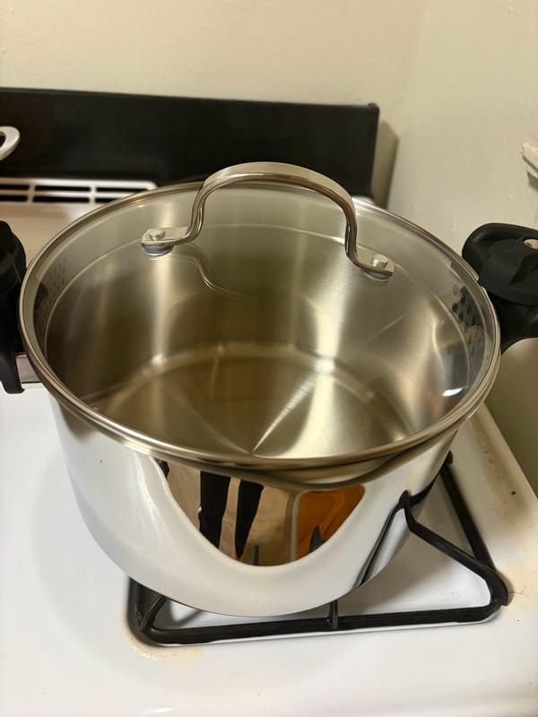 The Gotham Steel 5 Qt Stainless Steel Stock Pot is great! It's perfect for cooking pasta since it has the strainer built right in. And I absolutely love how its got the measurements marked on the side. Wonderful for making soup as well.