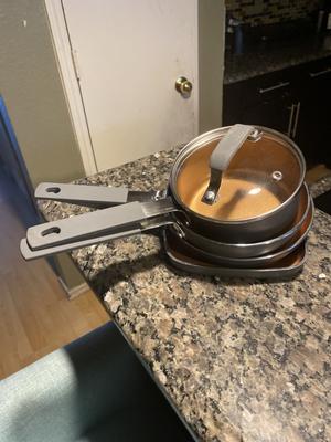 God bless all of you! This set of pans has been a bless for me because I cook so many things only for myself. So I save a lot of effort because I don’t have to wash my big pans. Please don’t give bad reviews because they are small. There are people out there who really need these pans. Please, READ DETAILS BEFORE PURCHASING. THEY ARE SMALL AND THAT IT IS GREAT FOR ME. Also, they are easy to wash and excellent good quality. The best quality.