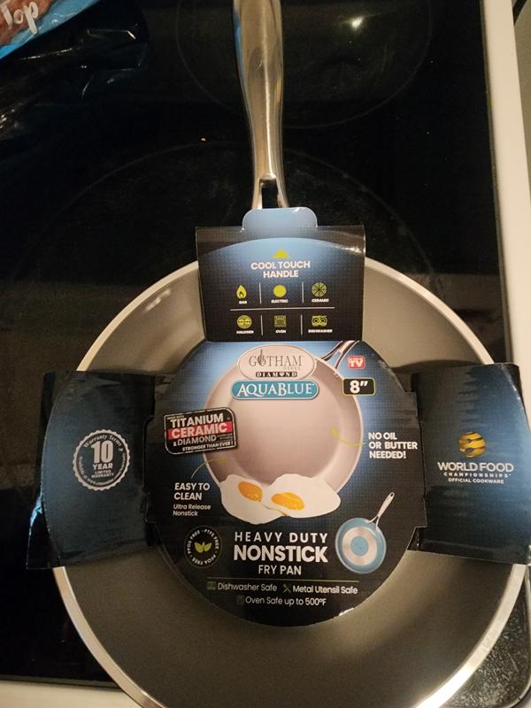 This is a pretty good pan! Pros: 1) I love the colors! The blue and gray look really good together. 2) It’s lightweight. 3) It’s very easy to clean. 4) Pro/con: You can cook without oil. I cooked eggs, but it wasn’t as easy as I thought it was going to be. It still stuck and I had to scrap pretty hard. Cons: None other than the still con listed above. Overall, this is a pretty nice pan. I do recommend