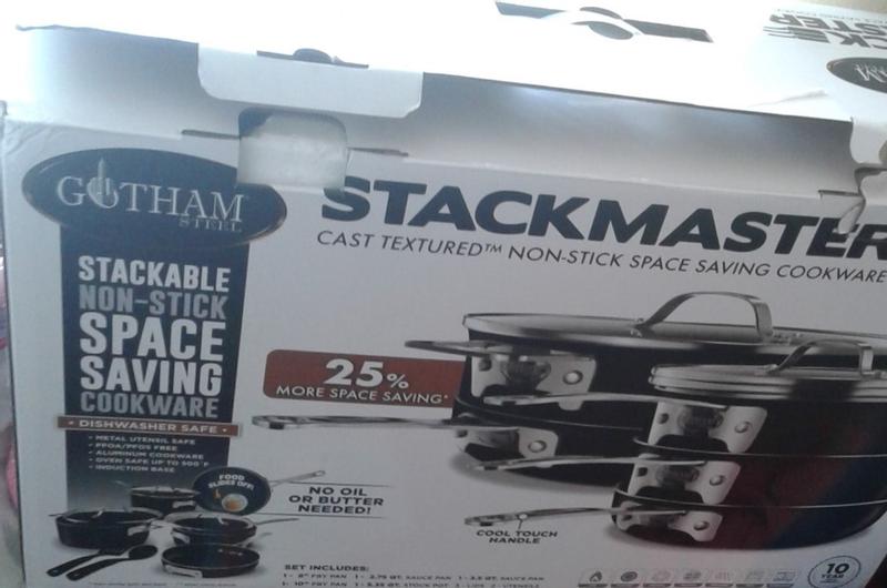 The Gotham Steel Stackmaster non-stick space saving cookware is exactly what is claims it is. Upon unpacking the pans I immediately saw how nicely they all stacked together. I have very limited cabinet space so this was a huge bonus. The pans are fairly light weight. The bottom of the pans are heavier and the sides are a little lighter. The titanium and cast iron bottom appears to be very strong and will last for years to come. It was came with a set of plastic utensils which are also very well made. Upon reading the instructions I found out that you don't need to use any butter or sprays to coat the bottom of the pan. This was a learning curve for me but I put a sticky not up to remind myself not to use any until I got used to working with the pans. I decided to try eggs since we all know that eggs are going to stick if we don't use butter or a spray first. I made perfect overeasy eggs the first time. Not only did they not stick to the pan but I also saved myself several calories! I have made several made several meals on the stovetop and in the oven and have not had any issues with sticking.