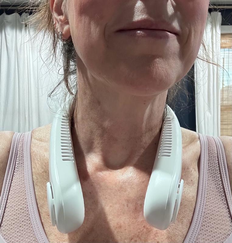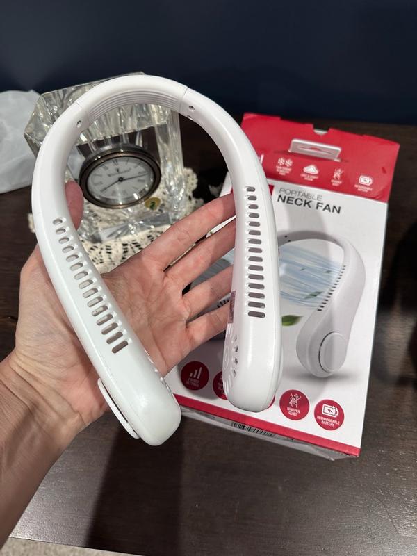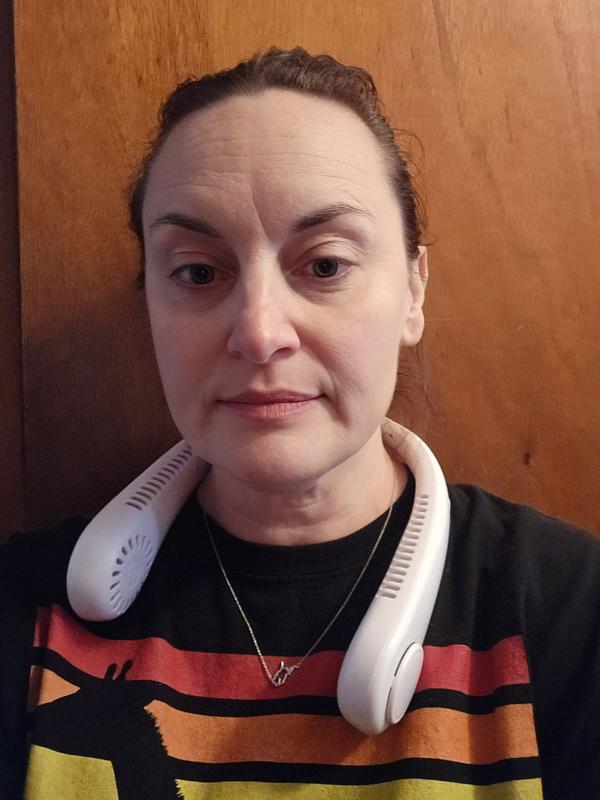 I use this frequently since I received it. I am in perimenopause and I overheat quite a bit. This fan is light and not annoying. Adjusts easily to my neck.