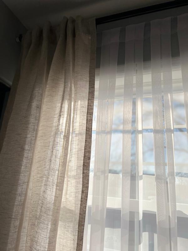 I love the Grace Sheer Linen White curtain and plan to get more. It’s sheer but it still offers privacy as you can see out but they can’t exactly see inside during the day. It’s also still chilly here but the curtain helps to keep the cold out with its great quality.