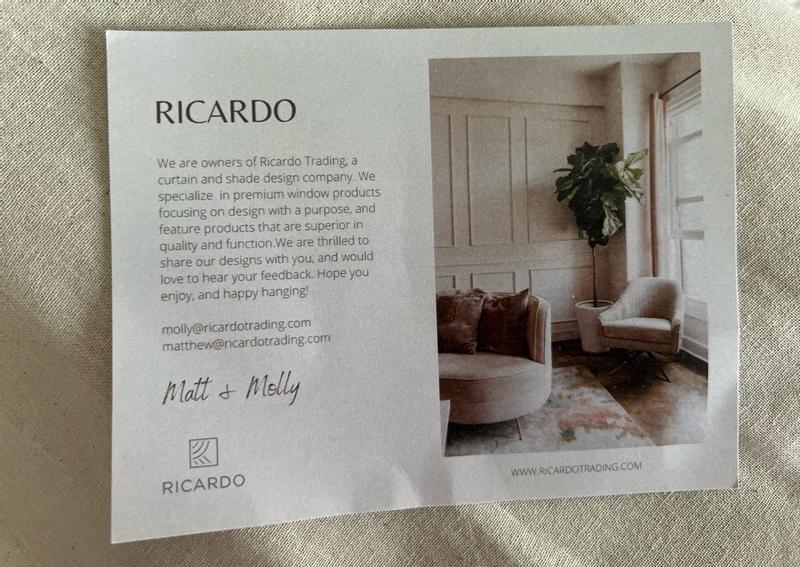 I absolutely love the material on this curtain. It comes in a cute little bag with a cute tag nicely nestled in. It’s a thicker sheet like curtain. It’s full length from top of the window all the way to the floor for my window. Just waiting for my rods to deliver to hang in my home office.