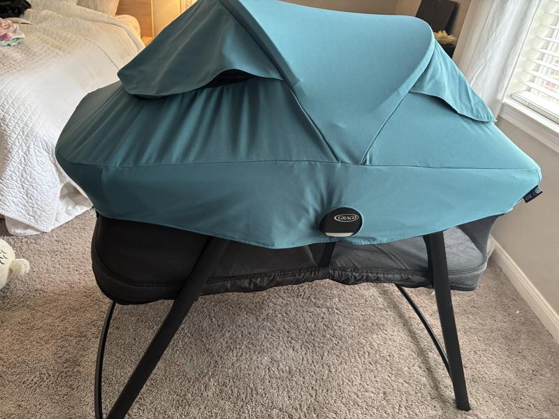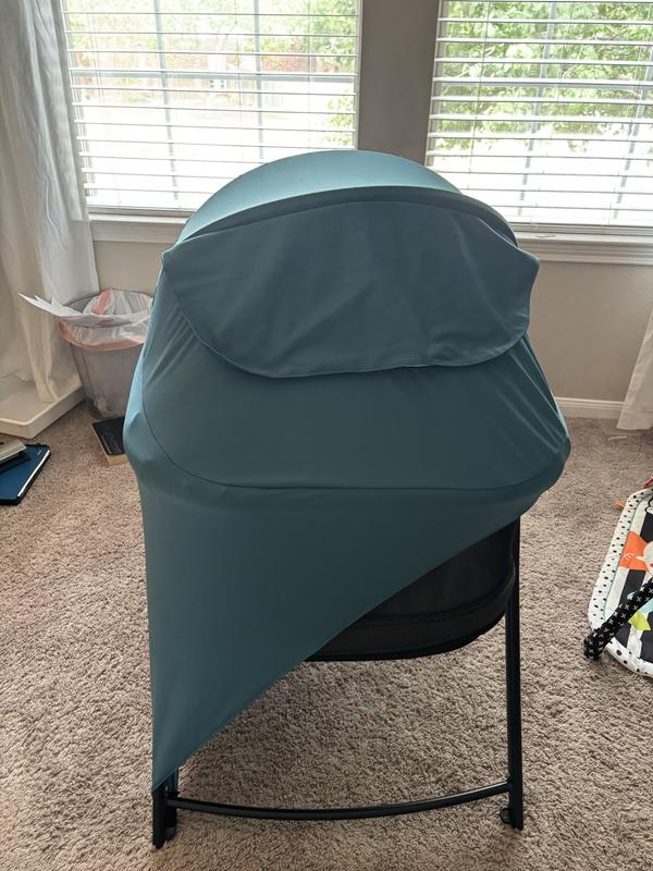 I love the look of this playard. Its simple and modern design makes it versatile and easy to integrate into different environments. The style is sleek, and I have been able to use it in several different rooms, and it looks like it fits right in. Of the four modes offered by this playard, I find the toddler playard and free play modes most useful. I am sure if I had this when my baby was younger, I would definitely have used the bedside bassinet feature as well! I also appreciate the accompanying canopy that will be useful when we take this playard on an upcoming trip, and we can use it outdoors to keep baby out of the sun. The canopy is a beautiful turquoise color, with two easy-to-open and close mesh windows, and the canopy is easy to apply and remove. I anticipate this playard making travel easier with my little one. We have an upcoming road trip that I am excited to bring this along for, as I know it will be quick to set up at our destination and versatile to be brought along during our different activities we have planned. Setting up and breaking down this playard is surprisingly simple compared to other playards I have used. Within minutes, I can have it set up and ready to use or packed back up in the convenient carrying case. Thanks to the Stellar Product Testing Panel for providing me with this playard. Overall, this is a very modern, lightweight, and simple-to-use playard that will make traveling with your little one a breeze as well as keeping your little one comfortable!