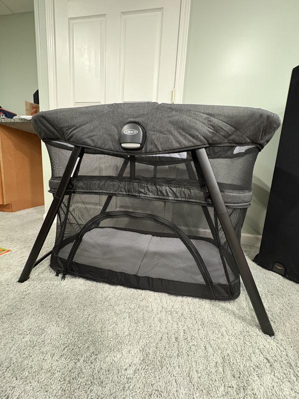 We've been using this as a bassinet for our little one, and look forward to using it as a playpen. I love the flexibility. I just wish it traveled easier. To pack in the included bag you have to take the leg extensions off, which good luck with that. It's easy to assemble but taking it apart isn't happening. I would recommend this item, just don't expect it to break down for travel. It folds but that's all most people will realistically be able to reduce it