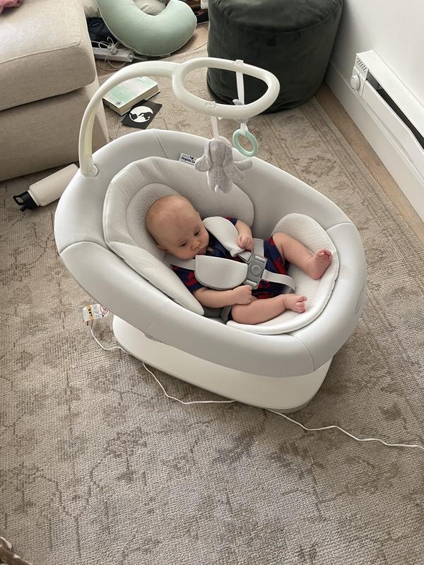 I was hesitant to buy this due to the price and not knowing how much I would actually use it. Fast forward a couple days and it has already justified its price. My baby when all other needs are met, she is fed and changed, but is still inconsolable, I put her in this and within a few minutes it has found the right combo to soothe her and sometimes even put her to sleep. It has given me a sense of peace when I need to do some work around the house, knowing she is safe and content and that if she starts to fuss it will change modes/speeds/sounds to hopefully relax her back to being her happy self. The only con I have is the cover being a light color. I am always worried about her having a diaper blow out and if the fabric was a darker color it would make me feel better. But other than that it was an easy set up, and she seems to enjoy it! If you’re on the fence I highly recommend if you are needing some time back in your day to be baby free but still have peace of mind.