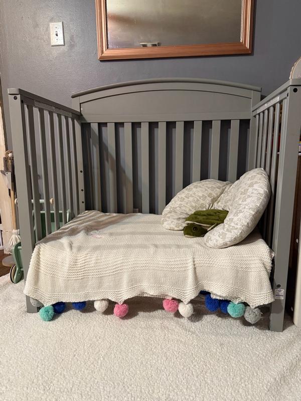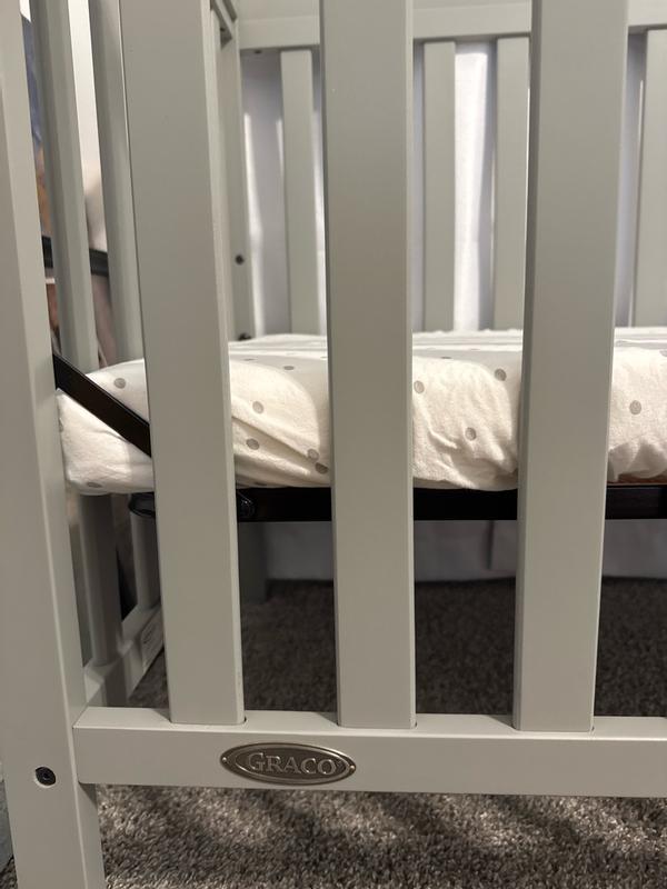 While I love the size of the Graco minicrib (it can fit through the doorways for easy moving!), there are a few flaws that must be noted. First, it was more difficult to put together than our old regular sized crib with more pieces that needed to be put together. Once built, it is very sturdy and would take some doing to spill over. Second, there are these strange "tape marks" that are stuck in the paint's finish that are not what I expected to see in a known brand-name crib. This makes the sides not entirely smooth. Finally, one of the springs in the spring base is not attached! This is the most grevious of flaws, as I am not 100% certain of it being safe. It is near impossible to put back onto the spring frame without appropriate tools and the risk of it flying and damaging a ceiling, wall, or piece of furniture. The springs are extremely taught, which is good if they are already attached. Loose ones are a definite downside. Another improvement that could have been utilized: the possibility of putting in wheels in case there is a need for moving the crib from room to room. While it says its 4-in-1, that is kind of a misnomer. They are just saying the 3 and 4 options are using the side pieces as a headboard and footboard for a bed, with no suggestions on how to keep them up and secure when doing such. You'd probably have to buy a separate kit to actually succeed in this, resulting in an incomplete 3 and 4 options provided by this bed. Overall, the bed is beautiful, small and movable, and sturdy enough for our precious little one.