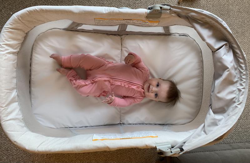 Great bassinet but they need to put a hinge or something on the pad. We put a waterproof sheet over it for easy clean up. As soon as you add a fitted sheet, the pads slip over one another creating a lump in the center. My husband had to modified it by riveting in a hinge so that it could still fold but stay flat when in the bassinet. Graco could fix this very easily.