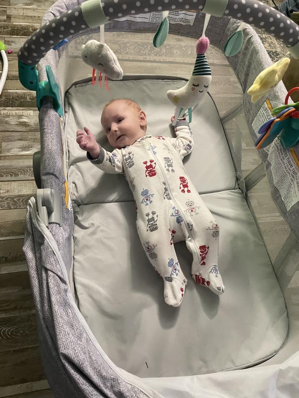 I received this bassinet to try as part of the Stellar Parent Panel. I was excited to utilize it with our newborn welcomed to our family just a few days prior. My first impression of this bassinet is that the coloring was gender neutral and fit in well with our home decor unlike some other baby products we have that are more of an eye sore. The size of the bassinet mattress was large and would grow well with a baby as they get longer and begin to roll in the first months of life. I liked that it also featured a shade to keep baby free of bright lights on their face. I also liked how lightweight the bassinet was - making it easy to move about our home as the day changed where I was throughout the house or on the go if needed. A feature that I didn’t utilize but like the option of is the toddler play yard feature that the bassinet can convert into. I could see utilizing this for doing outside work around the house while keeping baby close this summer once older. I also like that I could remove the base for a more stable sleeping option when on the pontoon boat this summer! Overall, our son did well sleeping in this bassinet throughout the day but did not like particularly like the vibrating feature that was an option. He did however like the bassinet without this feature. I wish that this product offered a feature for a baby with reflux issues - perhaps offering an inclined mattress or legs? I am glad I was able to test this product! Thanks Stellar Panel!