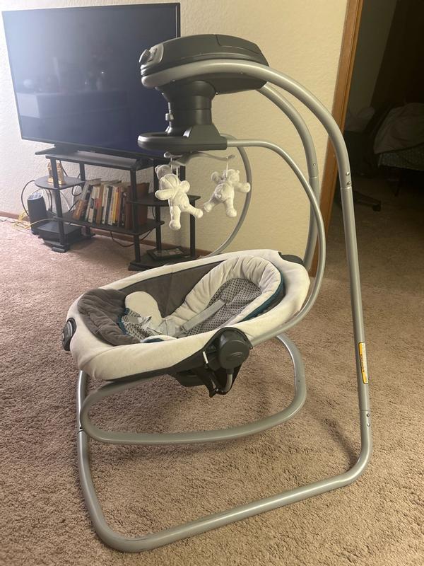 Duet soothe swing and rocker is just what I was looking for to help in caring for our grandchildren. Joyfully, there are 2 little ones and while the swing/rocker is new to our home, it is already a hit with both of them (ages 7 months and 2 months). Movement is nice, interchangeable between side to side and front to back movement. Sounds and music are nice. Haven’t used the vibration yet. No complaints about the item. Highly recommend!
