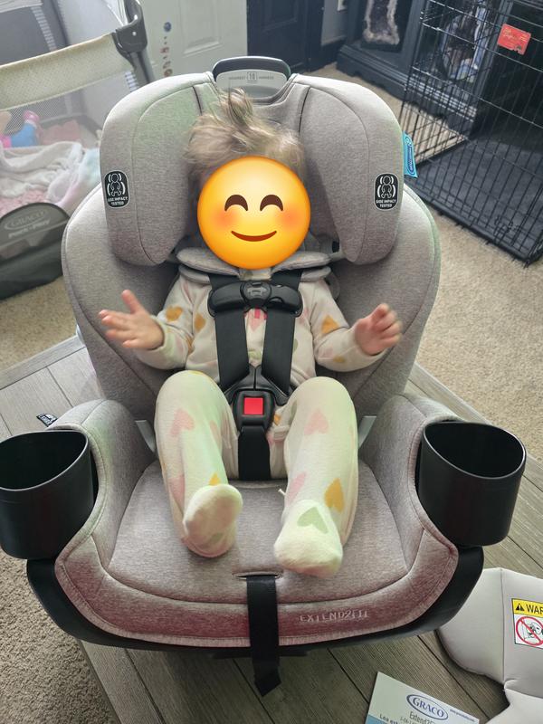 We have love our extend2fit so far! Our baby is in the 80th percentile and started getting uncomfortable in his infant car seat. He has been a happy boy in this convertible car seat. It was fairly easy to install and get him buckled in. The release lever is a little tricky to get him unbuckled but seems like it will get easier as we use it more. I love that he can be rear facing for a while and it has great crash test ratings. My husband and I are both tall so we decided against the rotating car seats to save space and ended up buying another extend2fit for our other vehicle.