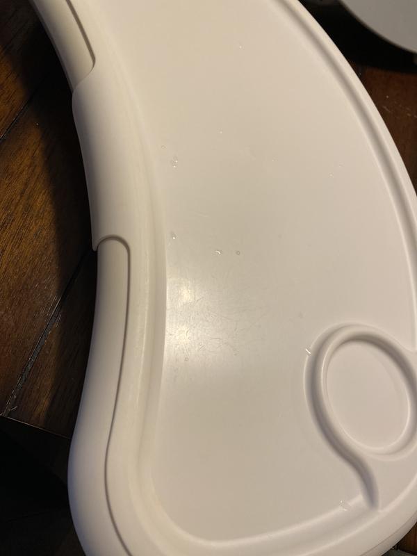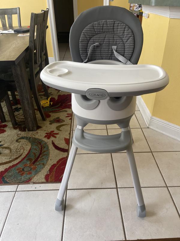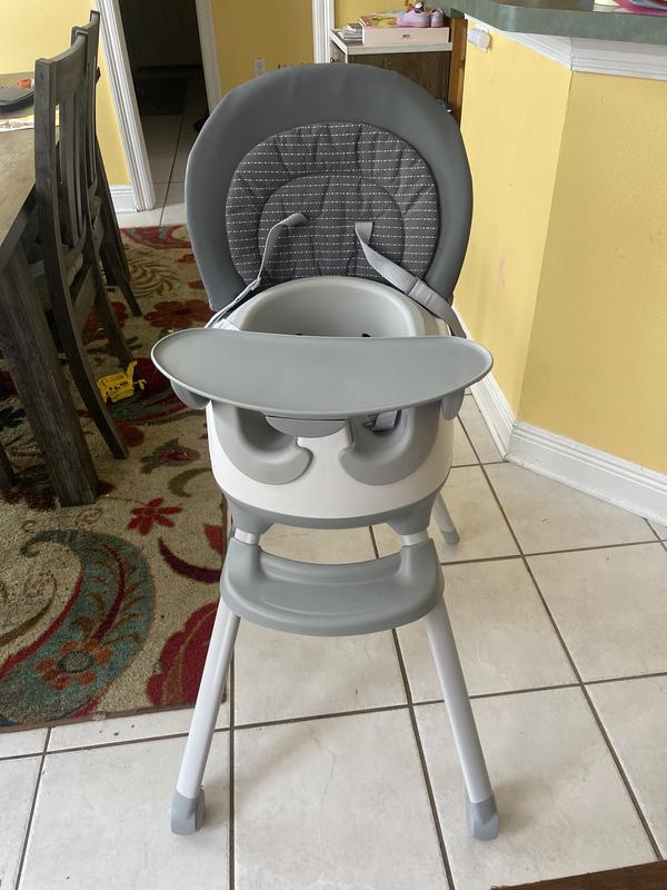 I really dislike this high chair. It’s big, bulky, doesn’t roll easy when moving, the trays stain easily with anything red/orange, I have scrubbed it and you can still faintly see it. The lap straps are not removable and says to clean with soapy water, try cleaning anything with color off with soapy water 😂 it’s never white again and it looks dingy and grossed me out. Why are straps made out of anything but rubber anyways? Cloth is ridiculous. It’s hard to get baby in and out. I made a poor choice purchasing this. This high chair was definitely designed by someone who doesn’t have children. Or they just have the cleanest children in the world who don’t play with their food. Seriously buy a different chair.