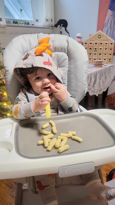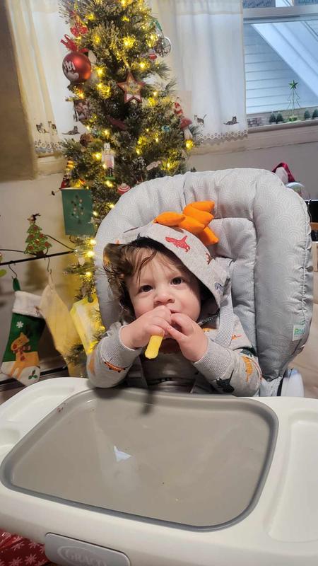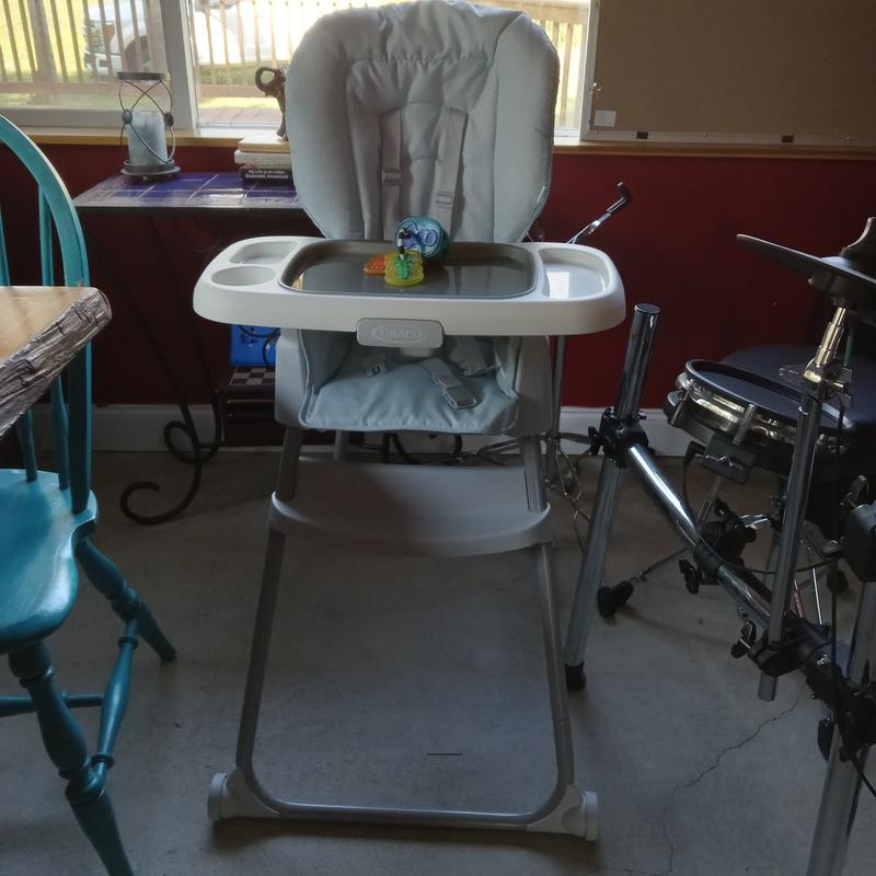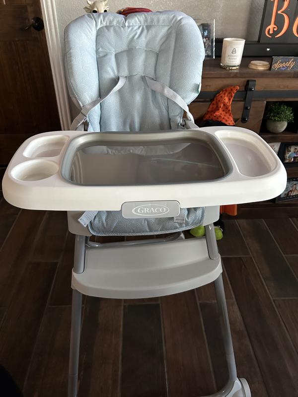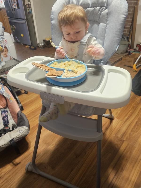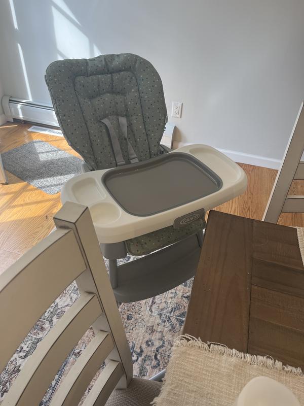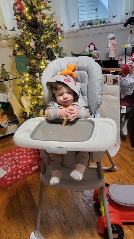 The chair is great except for the tray is a little hard to click in - the middle piece gets caught on the baby’s legs