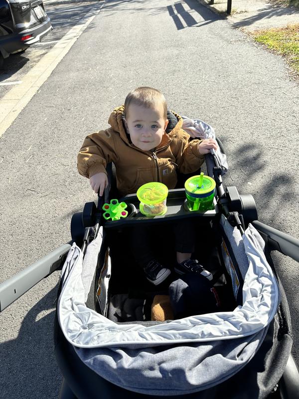 I really really want to love this but getting it opened and closed is SUCH a pain, it’s so fickle. I’m actually getting around to writing this today purely because I’m trying to get it closed to put into my car today it wouldn’t release and so I couldn’t take it with me. I don’t have 20+ minutes every time I want to use this and I don’t trust it’ll open or close reliably enough to bother trying to take this beyond my home anymore. It isn’t cheap and I got the attachment for the bucket car seat too specifically so I could use this for my toddler plus newborn but it’s just not easily functional enough to actually allow me to use it as intended. Disappointed but great idea. Also it’s lacking basic skills things like a cup holder, phone holder and basket/storage area. For the cost, I’d suggest just getting a regular utility wagon for hundreds less. Or, if you haven’t purchased your bucket seat yet and are considering one of these then getting the evenflo or something instead which has the storage basket.