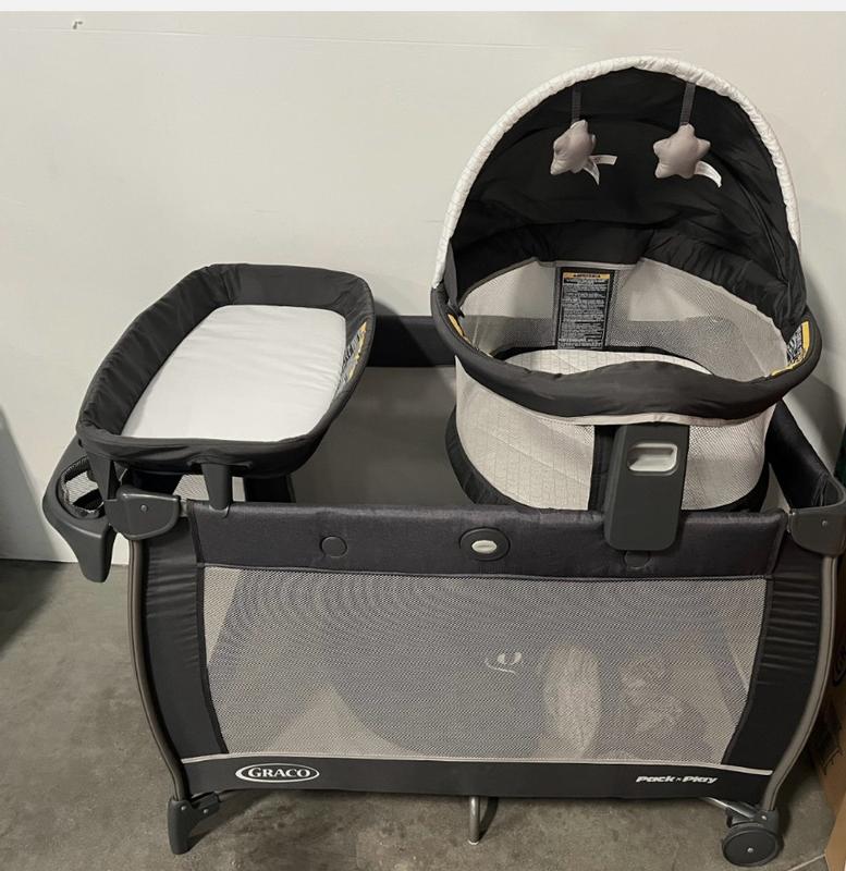Great pack and play, love the bassinet that ypu can pull put and place where ever you need. The changing table is the perfect size for our 2 month old, and the little storage shelf is greatm this will be perfect for travel.