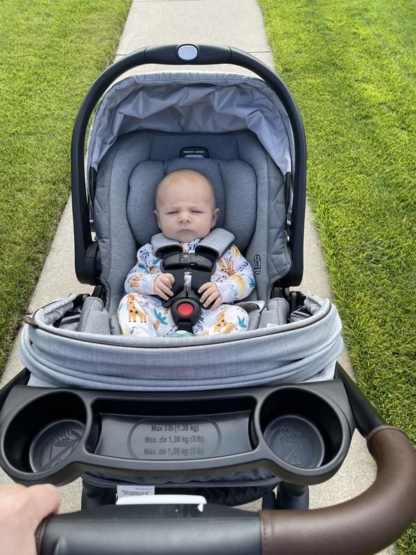 I received this product as part of the Stellar Product Testing Panel. I didn’t expect to like this travel system as much as I did! Pros: Compact Lightweight Spacious Thick but soft fabric Easy handling I loved that everything in this system felt spacious without being bulky. Both the car seat and the stroller were super lightweight while still feeling sturdy. I also really like the fabric which was very soft and cooling. My infant was very comfortable and didn’t sink into this car seat like she has in other infant car seats. The fact that I can adjust the headrest like a convertible car seat is a game changer! The large canopies are also a huge plus for me. I like the magnetic lock on the straps, but did find some of the adjustment buttons to be a little difficult to push in. I really love that you don’t have to remove anything from the stroller to install the car seat, the click and go is so convenient. Cons: I’m not sure that the EZ spin wheels are necessary. The stroller is easy to maneuver and I feel like the functionality is overkill. While I appreciate extra locking wheels, I didn’t realize that the front wheel was locked at first and I had a really hard time figuring out what was wrong. Maybe make this a more mentioned feature in the manual. I also find the shoulder straps on the car seat to be too bulky. Generally, I love Graco products and this travel system is no exception. It feels sturdy, looks luxurious, and is a breeze to install and handle.