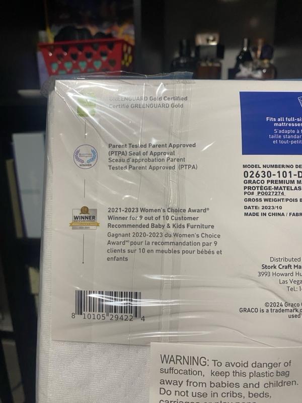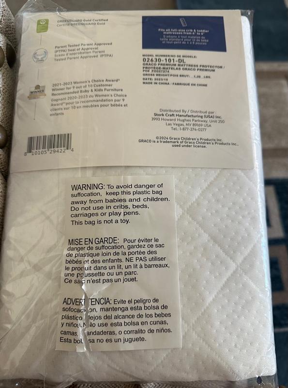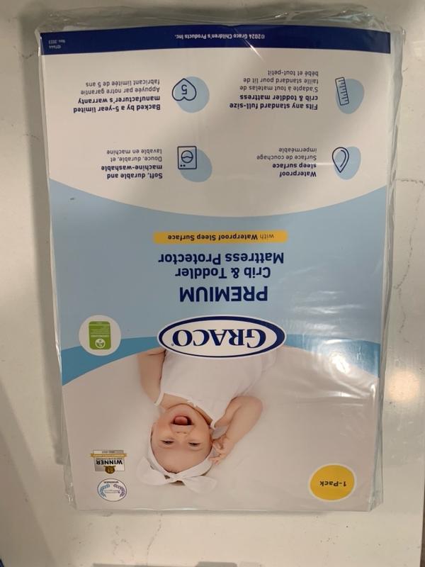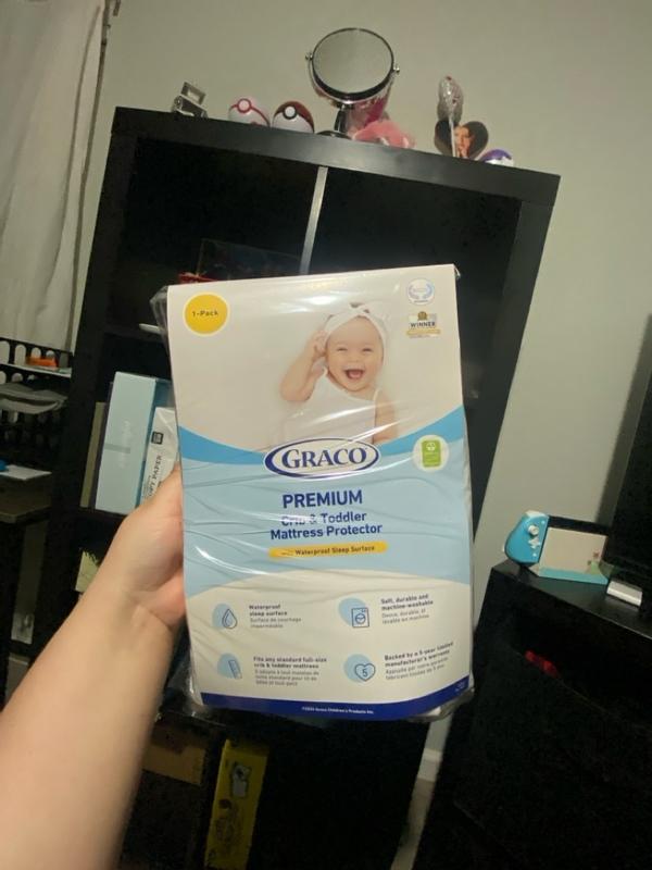 I received the Graco® Premium Waterproof Crib and Toddler Mattress Protector as a complimentary gift. It fits standard-size mattresses perfectly, is PVC-free, waterproof, and GREENGUARD Gold Certified, ensuring safety and quality.