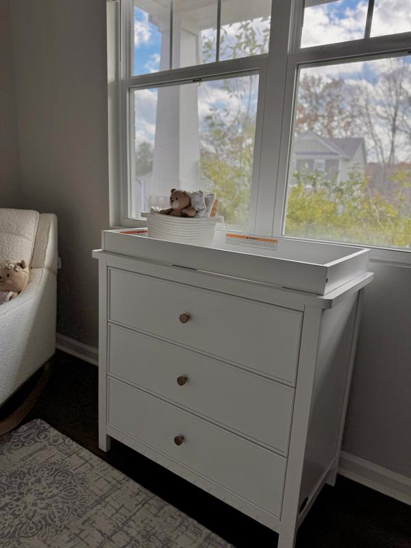 We got this for our boys room and it’s perfect! I love how easy it was to put together and how study it is! The changing pad area is perfect for my youngest baby!
