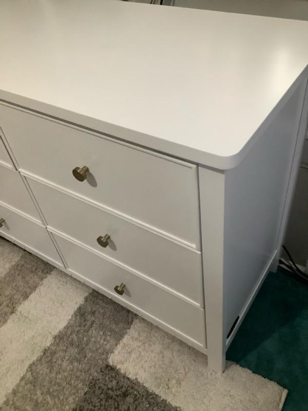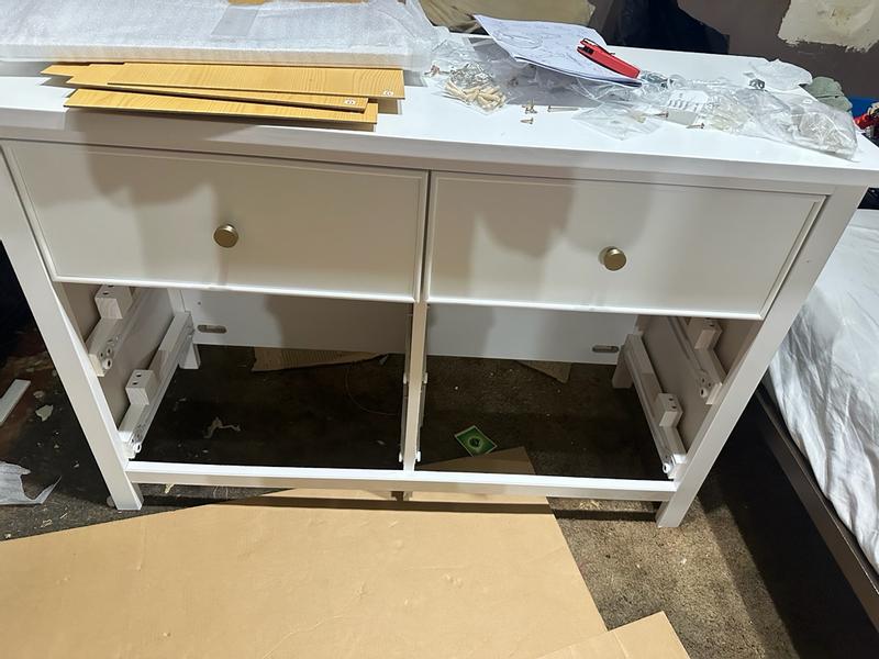 This dresser is so sturdy, perfect size, fits a lot of clothing, has a very sleek design. The material seems to be very strong. Assembly was a little rough the drawers on top can be a little annoying but I’ve learned to work with them. Besides that the dresser is perfect. I used it for all my sons clothes. It’s also very good because he can’t open the drawers.