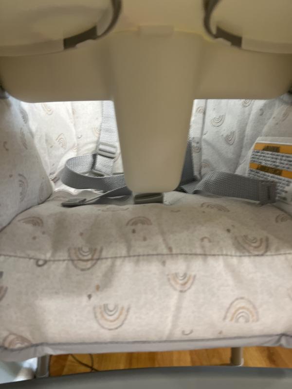 Works great. We got it to replace an older chair. Love the removable cover. It’s a little bit of a task to get the legs back in on the front, but we have taken it to various family holiday gatherings and we able to get the legs on pretty fast. Wish the back of the chair locked more firmly into place - my 19 month old can bop forward and backward and make a lot of noise with the chair back shifting. But that’s a small issue.