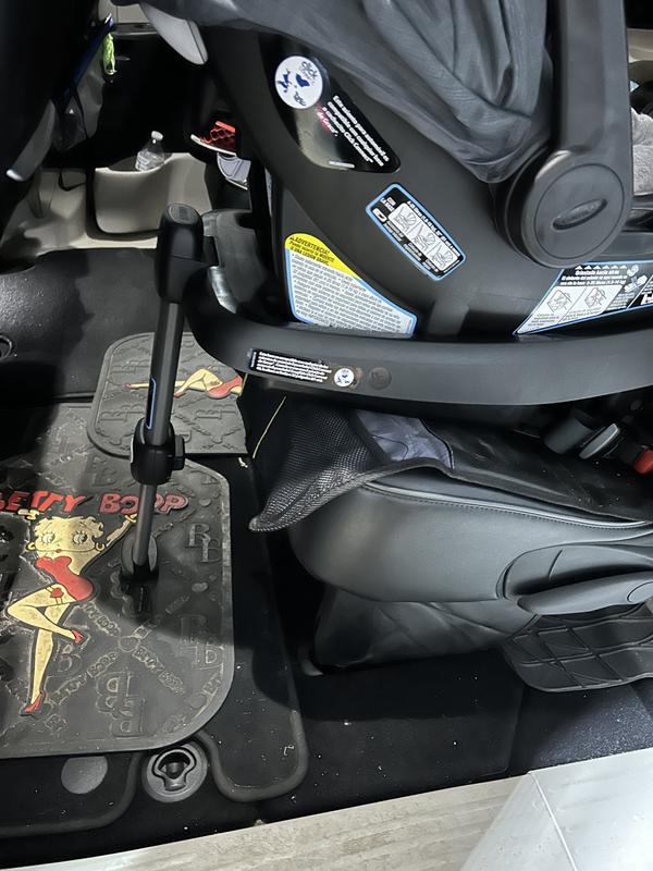 I received this car seat from the Stellar Product Testing Panel and I'm impressed. The Load Leg feature makes this Graco SnugRide car seat more secure in my vehicle. The Load Leg gives the seat extra support and tension so that the car seat doesn't move at all. The Leg adjusts easily with a push of a button to adjust the length for proper fit in different vehicles. This makes me feel better if something were to happen that I know she is very secure in this seat. It is easy to install in the car. The seat detaches from the base with a quick pull of a lever on the back of the seat. I love that the belts are adjusted through the front without having to refeed them through the slots. This makes it easy to keep the belts snug no matter what she is wearing and if course as she grows. The headrest extends upward for more room with a pull of a lever. The handle adjusts positions with one hand making it so easy to put her in and out of the seat. There is really nice thick head and body support for comfort and snuggling baby in. The material is soft to touch. The attached shade moves smoothly. I definitely recommend this car seat to anyone looking for a safer choice with high end features.