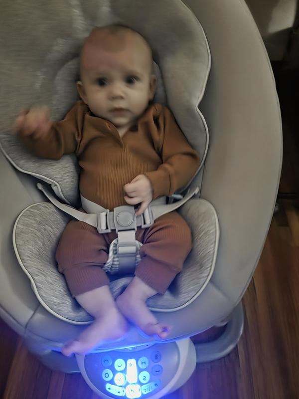 My daughter loves this soothing chair! It has many different movement settings, and vibrate. It's movements are smooth, not Jurky, and it helps me free up my hands when I need to make dinner, she will spit and watch me, completely content.
