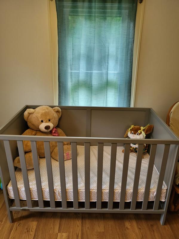 The Graco Theo convertible crib is exactly what we were looking for. For this birth, we decided to get a convertible crib and we are really happy with the purchase. It easily converts from a crib to a toddler bed. The grey is perfectly neutral and looks very modern. I love that it is green guard certified so once we don't have to worry about toxic chemicals getting into her mouth once she starts puling up. It is made very well, seems pretty durable and seems like it is built to last.