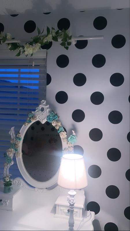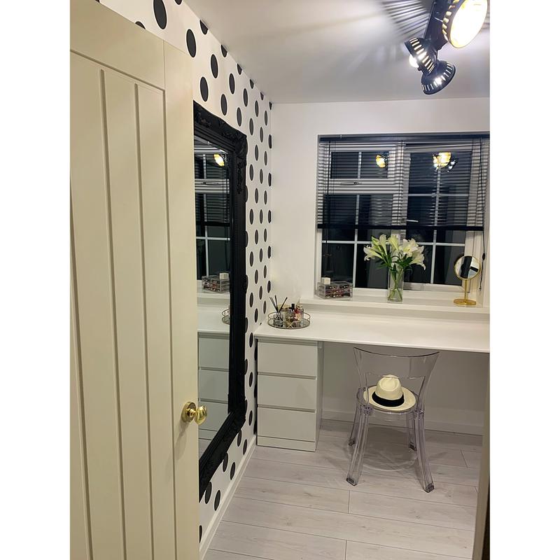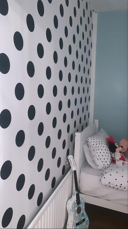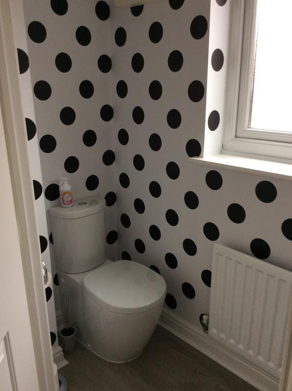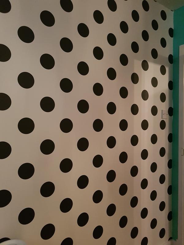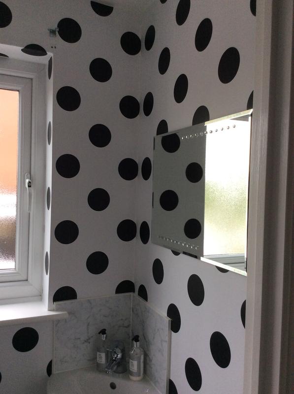 Found it very hard to find a wallpaper that I wanted, this dotty black wall paper was so easy to put up and it looks wonderful!!