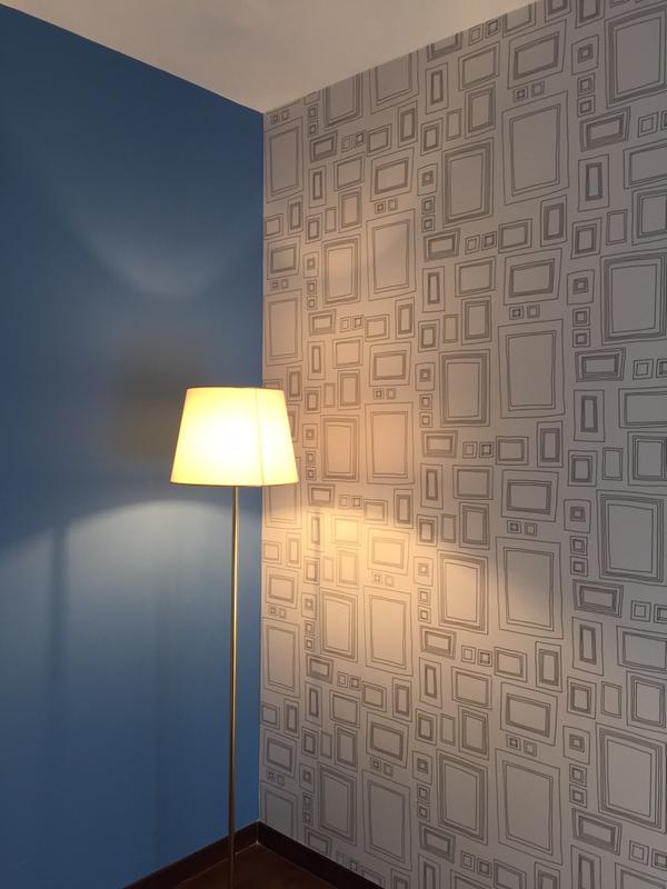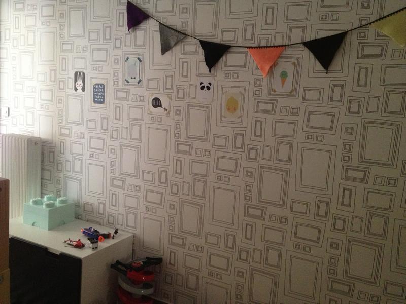 I used this paper in my small downstairs bathroom and it looks great. Instead of drawing in the frames, I've added black picture frames to give a three dimensional effect. We think it looks great.