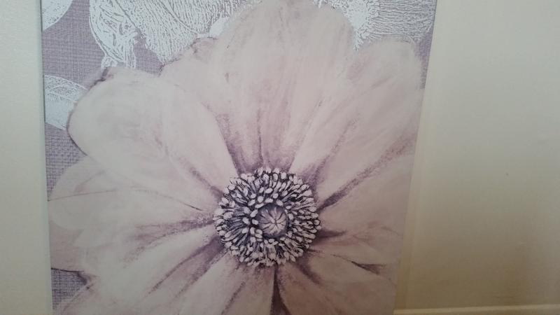I was looking for something floral and simple to hang in our lilac and white master bath. This fits perfectly.