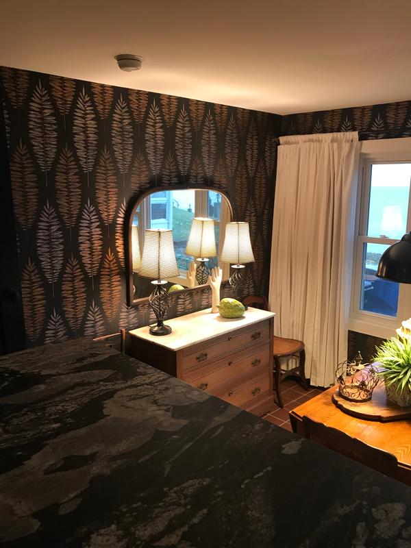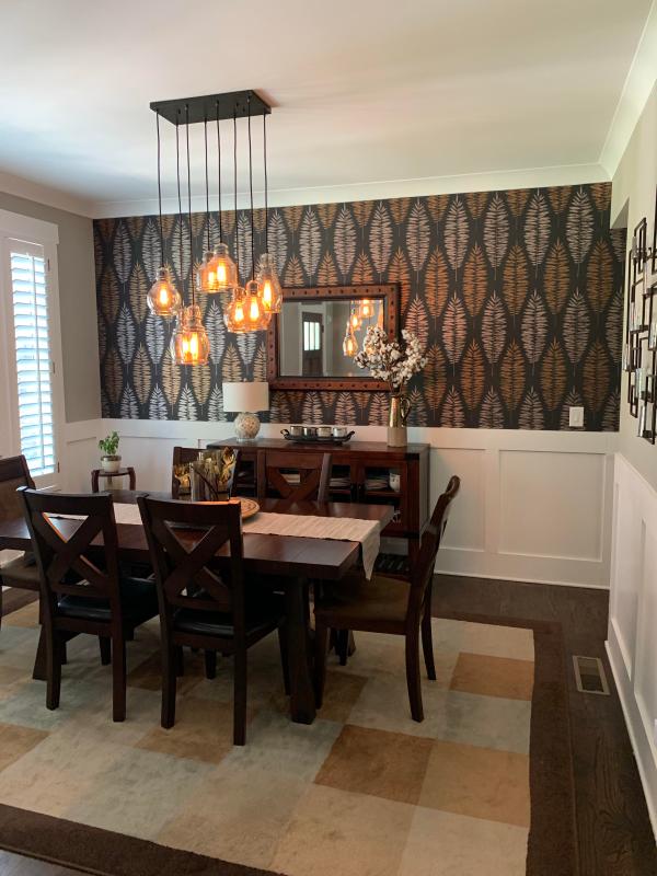 This is the fourth Graham and Brown paper I've used at our vacation home. The pattern is large-scale and dramatic - exactly what my tiny, boring breakfast room needed. I couldn't be happier with the results.