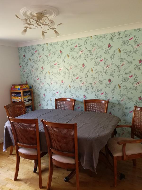 I was looking for a wallpaper with butterflies and or dragonflies and was thrilled to find this one with both. It is absolutely stunning and can't wait until hang. Just waiting for the contractor to finish my bathroom.
