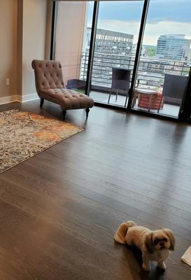 Overall this is a well made nice looking chair. Looks just like the picture. Fabric seems durable and stitching seems secure. Just got today, so don't know how it holds up. The legs don't have any edge protectors. So I will have to buy some to attach to avoid scratching wood floors. The bottom of legs is a little rough, not horrible tho.. The legs are hard to tell what color they are, possibly a super dark brown or black. It came in 1 big box about 60 pds. It requires assembly of attaching the back to the seat portion. Also legs need attached as well. It came in 3 days which was great. I am 5'3" and the length is perfect for me. My husband is 5'10" and his feet hang off just a bit, but not awkwardly or uncomfortable. I just feel the price is a little steep for what it is. Its not a big plush luxurious piece. I feel it's more of a nice looking chair to sit in for extra seating. Hope this helps.
