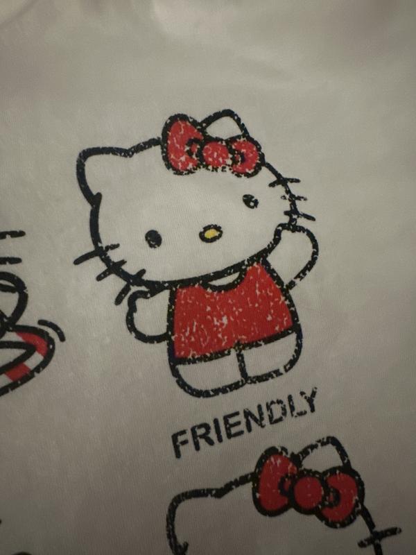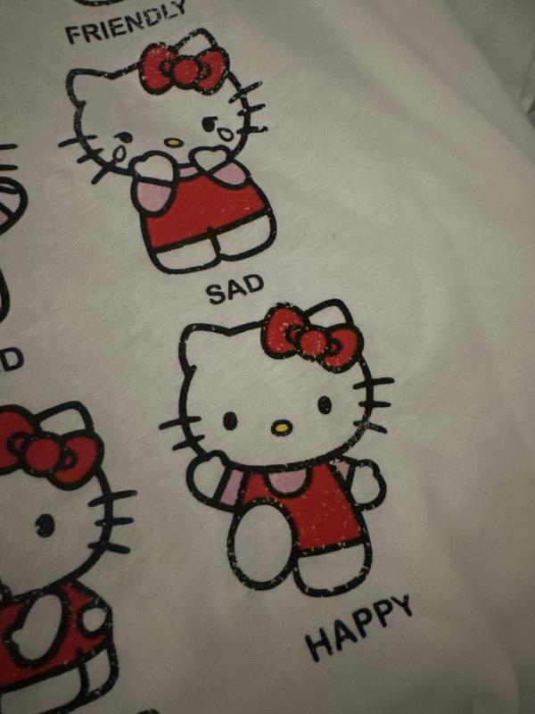 My toddler loves hello kitty attire and so when I saw this I had to have it for myself. The print is supposed to be “chipped off” in some of the kitties. If you zoom in on the stock photo you’ll see it. I love the effect but it’s clearly not for everyone.
